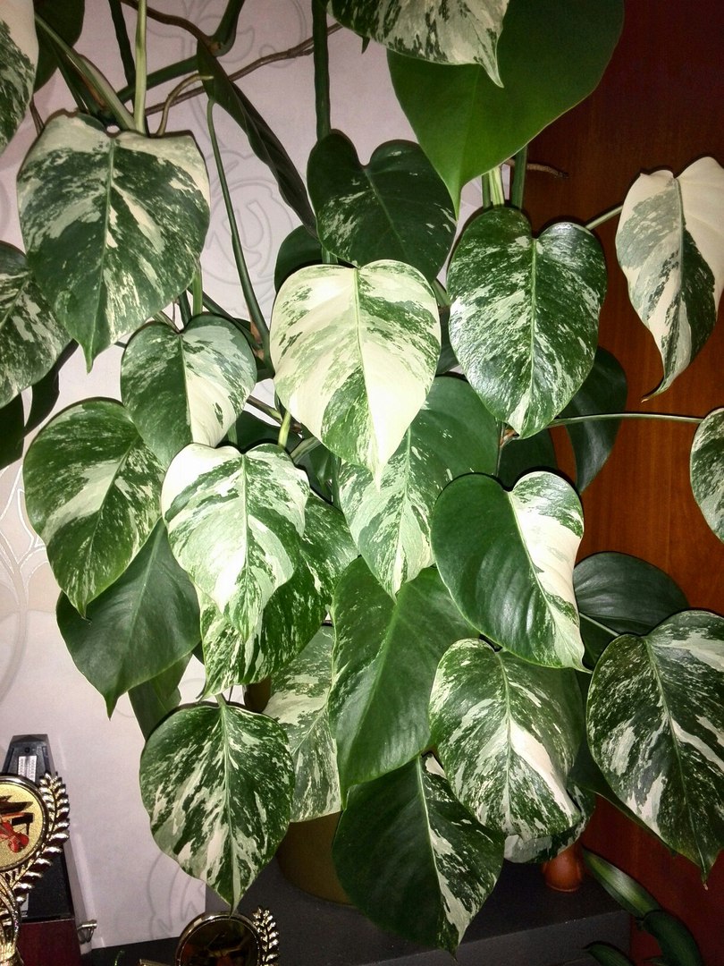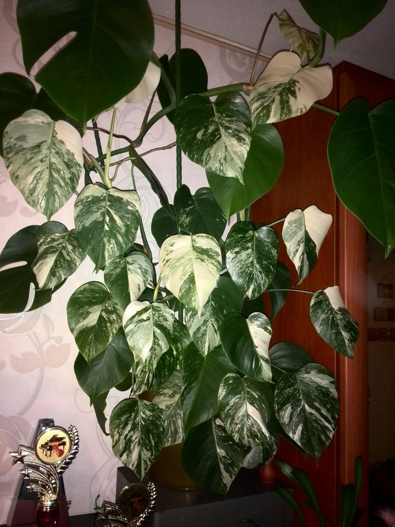 У меня Монстера скромных размеров, но зато пестролистная).