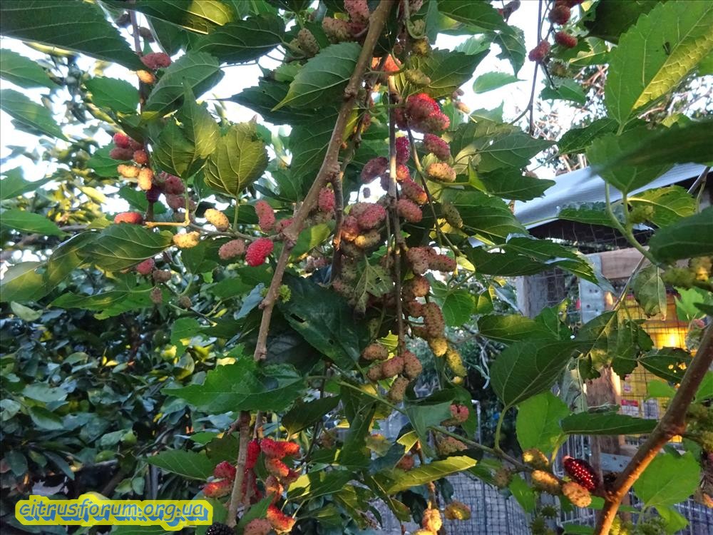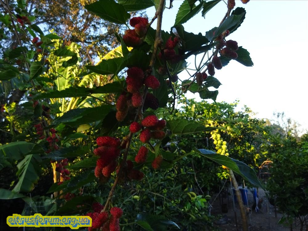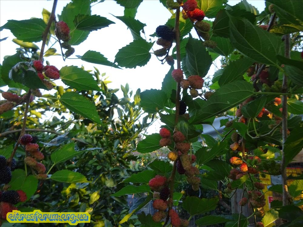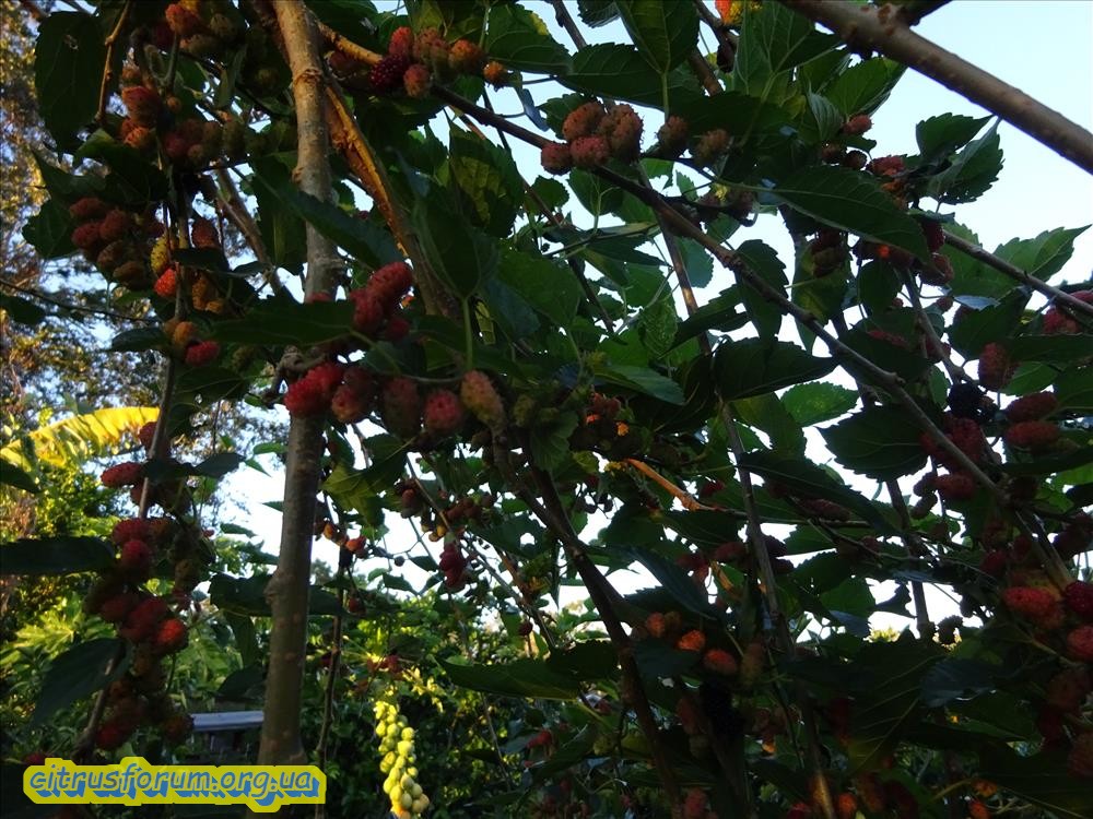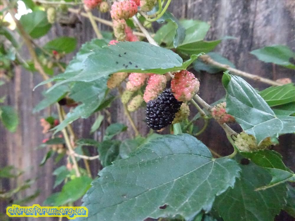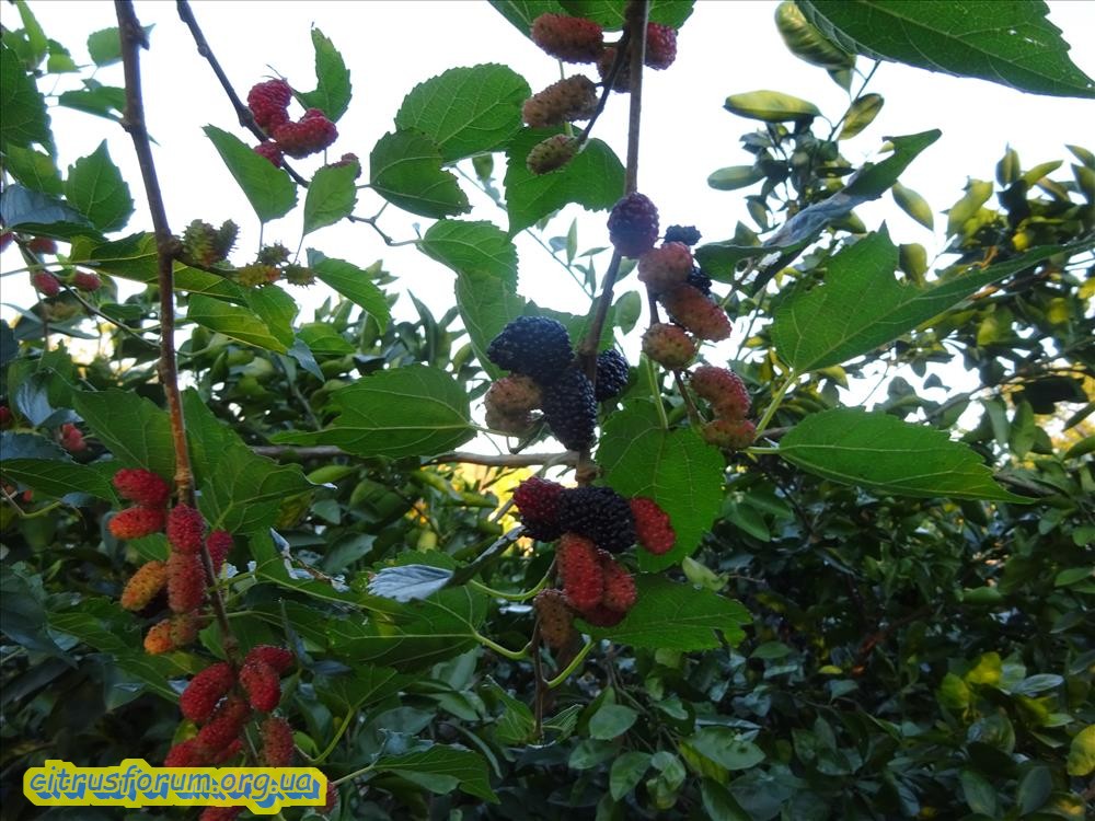 У меня на пасеке ( 1 га земли с растениями от старого хозяина), 9 деревьев шелковицы. Четыре дерева явно посажены, а остальные самосевом. Все разные, белая, красная, черная и все разного вкуса. 2 из них не плодоносят (деревьям лет по 25-30), одно в позапрошлом году обрезал ( сильно наклонилась над ульями), та часть, что осталась начала плодоносить, немного но плоды появились.