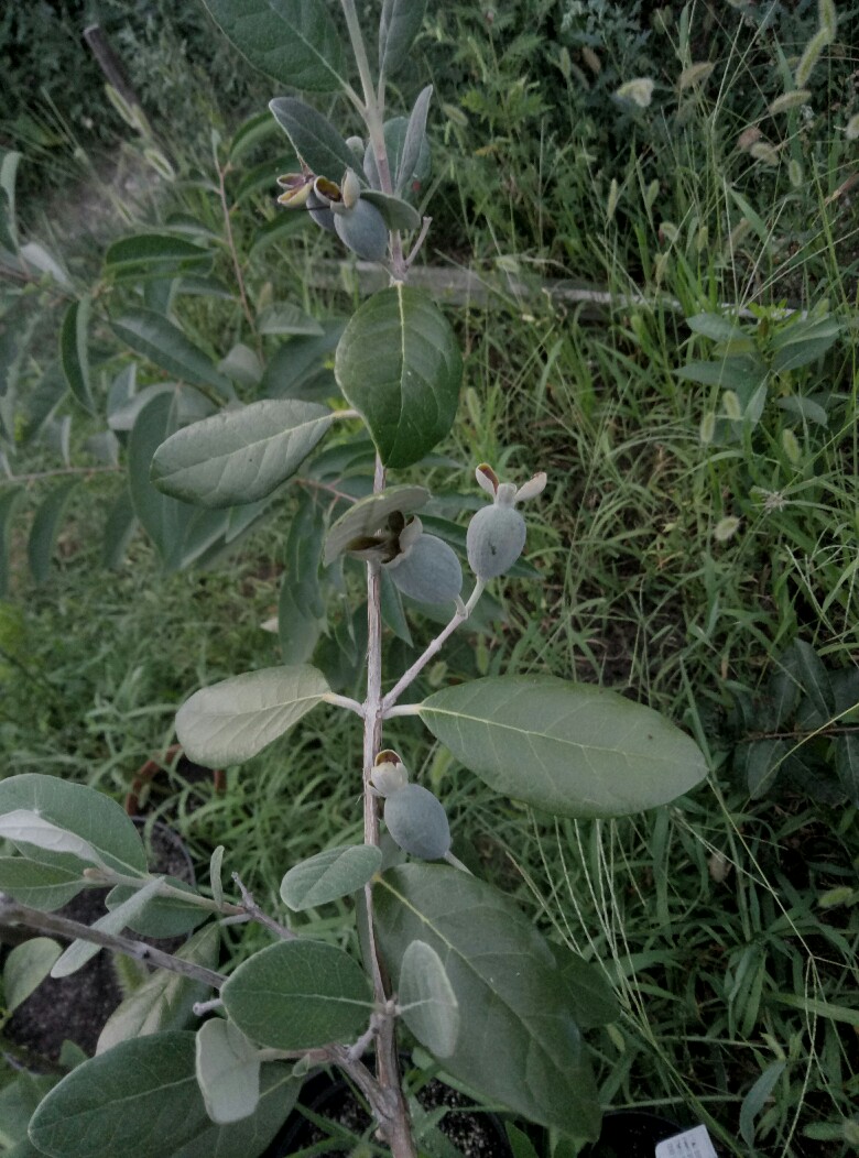 Здравствуйте. Помогите, пожалуйста. Разве это Фейхоа? Листья гладенькие, снизу белым не отдают, кроме того длинные и узкие...