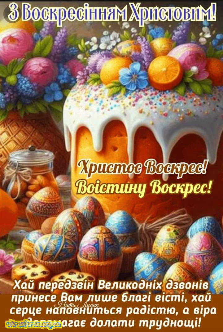 Вітаю зі святом Воскресіння! Нехай радість цього світлого дня переповнить ваші серця та домівки, а благословення Христове заповнить ваше життя миром, щастям і благополуччям.