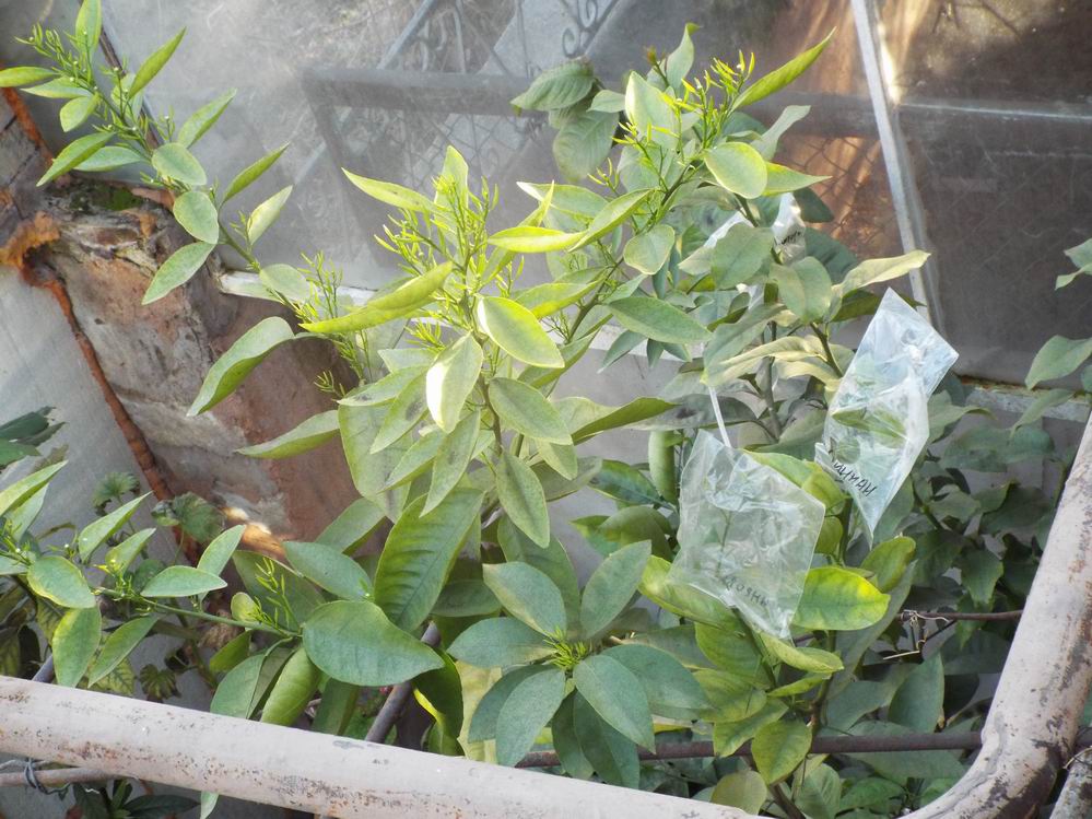 Пандероза зимой теряет много листьев, а ветки клементинов компенсируют потерю.