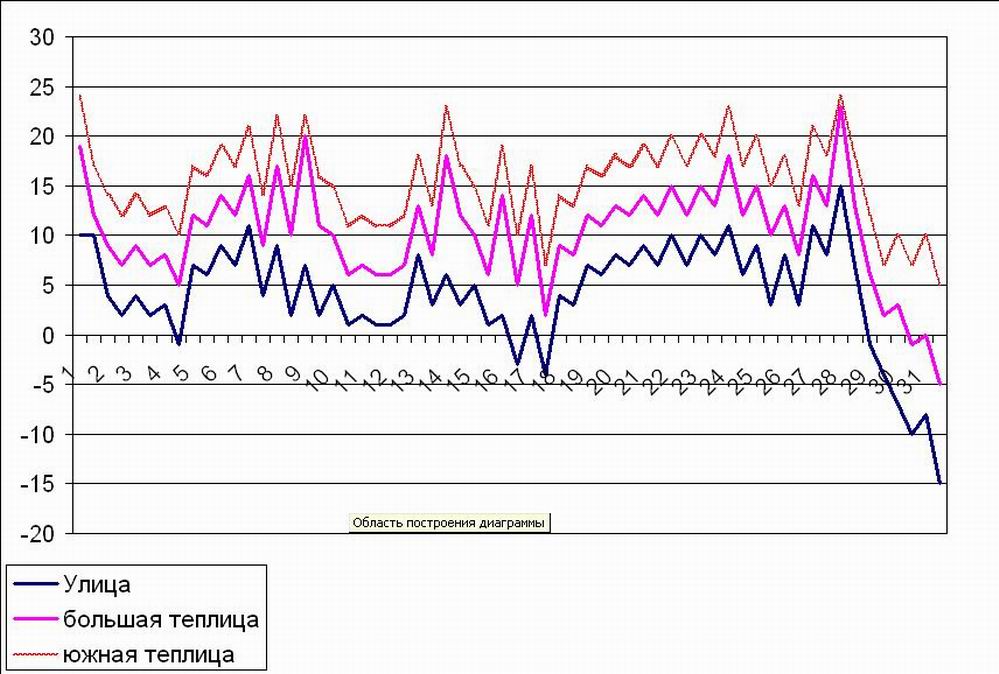Начинаю анализировать температуры зимой в большой пристенной теплице. Декабрь получился необычно теплым, первый заморозок в теплице был под новый год.