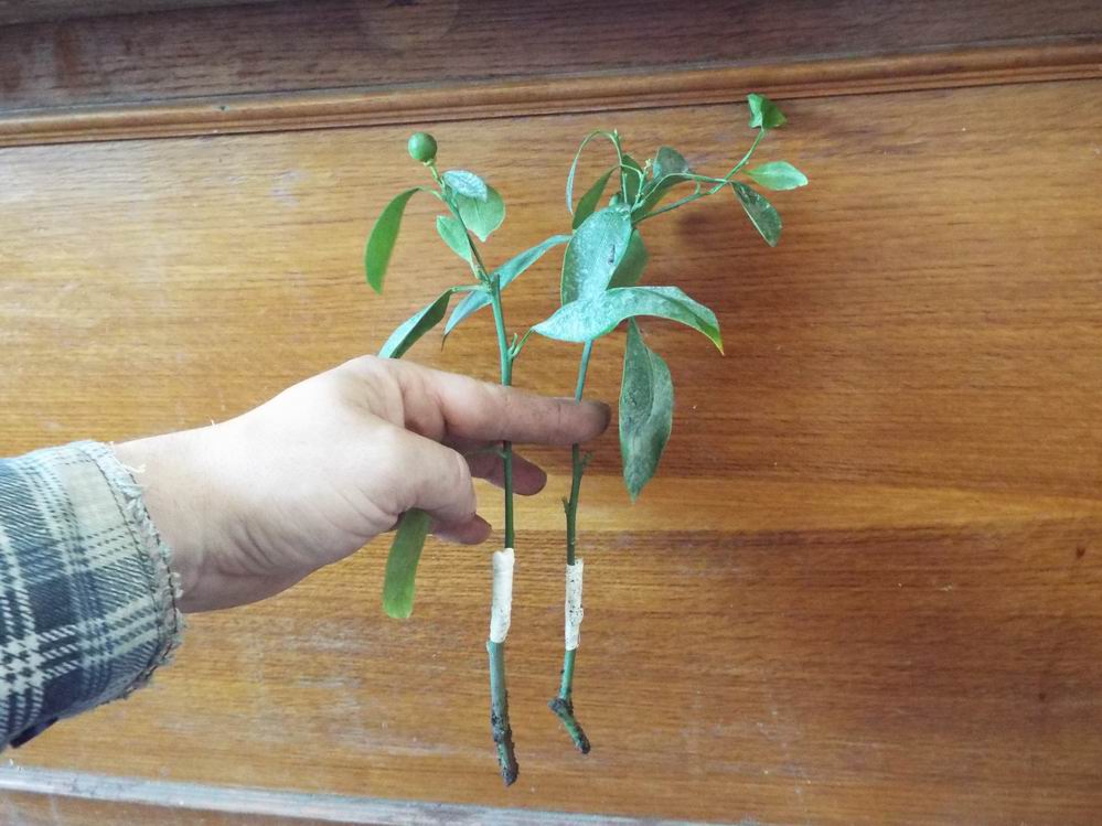 Эксперимент: берется черенок лимона(павловский) и большая ветка с плодами и бутонами(кукле) Ветка кукле была привита к черенку лимона без листьев и поставлена на укоренение. В результате крона кукле с листьями прижалась к кусочку лимона и питательные вещества из листьев про стимулировали укоренение всего растения. Плоды сохранились и продолжили развитие, бутоны тоже сохранились и расцвели.