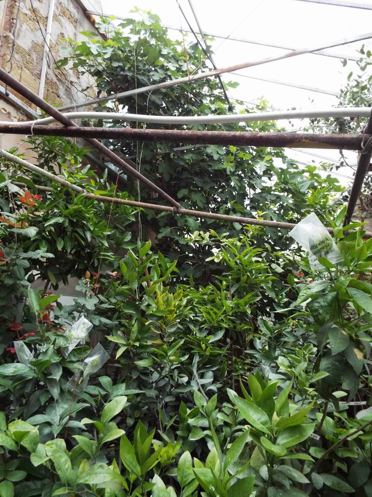 Дерево-сад Тарокко. Высота 4,5м, ширина 3м. Привито более 40 различных сортов цитрусов, выполнено более 50 прививок. Для достижения сбалансированной кроны использована многоярусная прививка, когда на доминирующие сорта привиты менее сильно-рослые для распределения силы прироста.