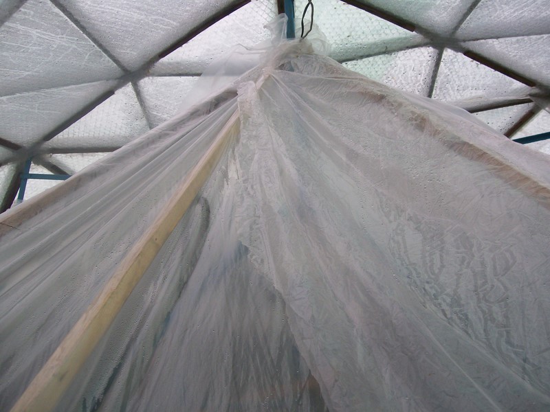 Верх пленочный, снизу подбито пузырчатой пленкой и, кроме того, на зиму делаю "кокон" из простой пленки.