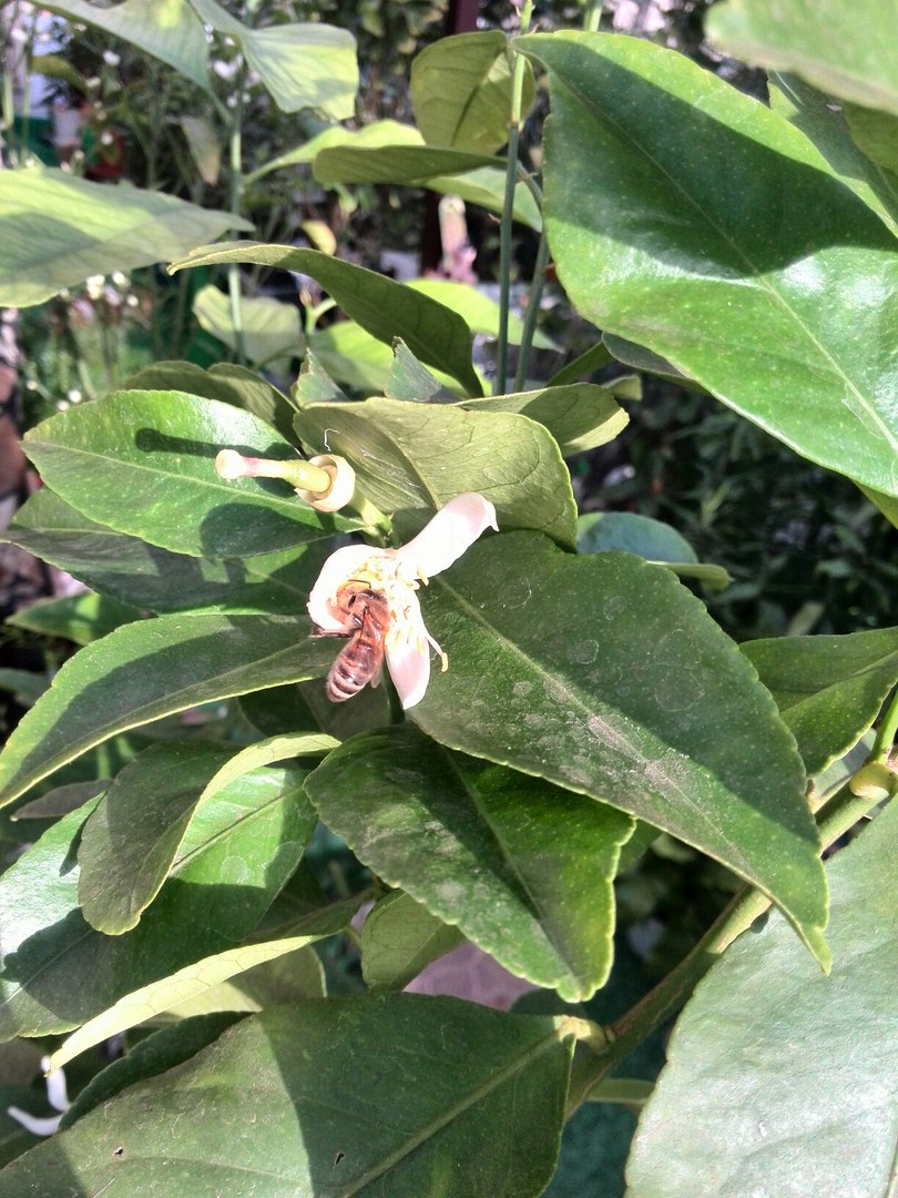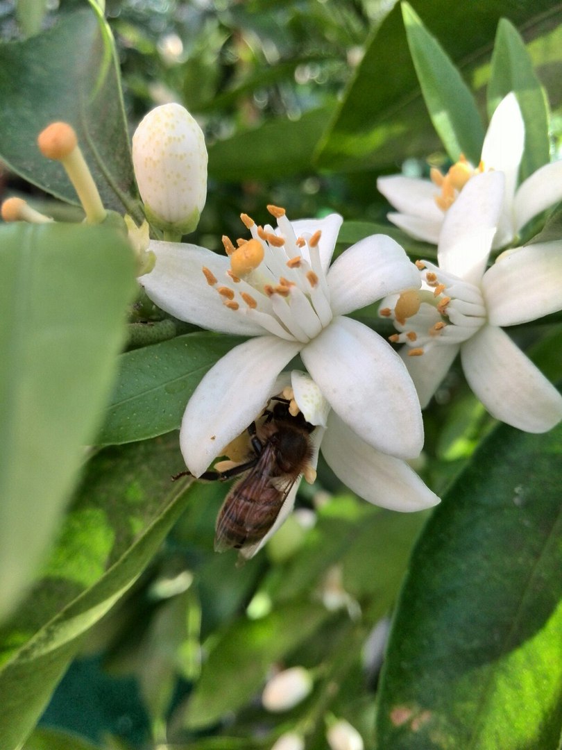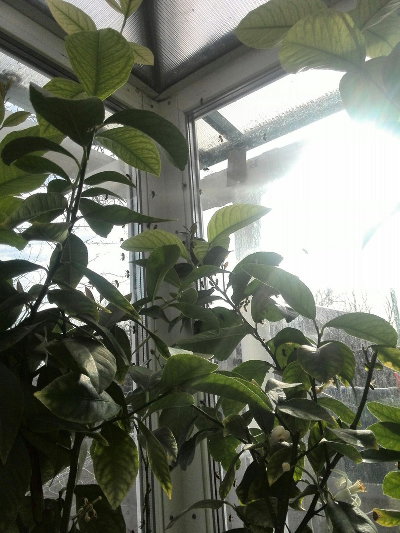 Вечерело, часть пчел улетело, часть выгнала, и мне нужно было попшикать цитрусы, и я такая пшикаю, и тут на уровне глаз "дракон" в кроне мандарина, вероятно пчелы были на трапезу))