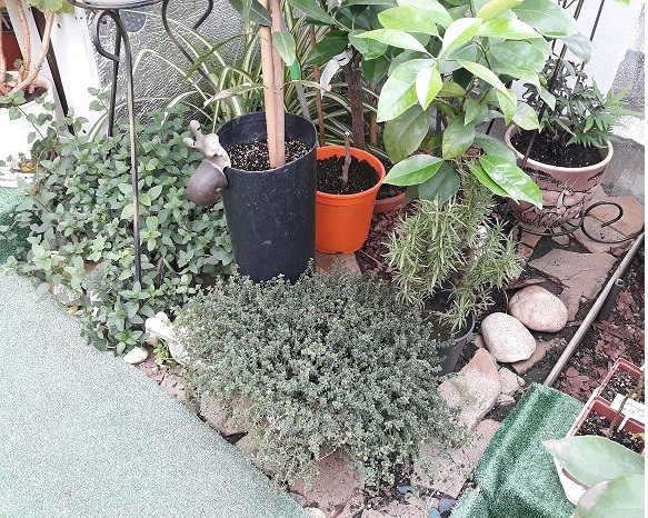 Даже уголок с пряными травами есть, розмарин, чабрец и мята, зимой будут свеженькие))