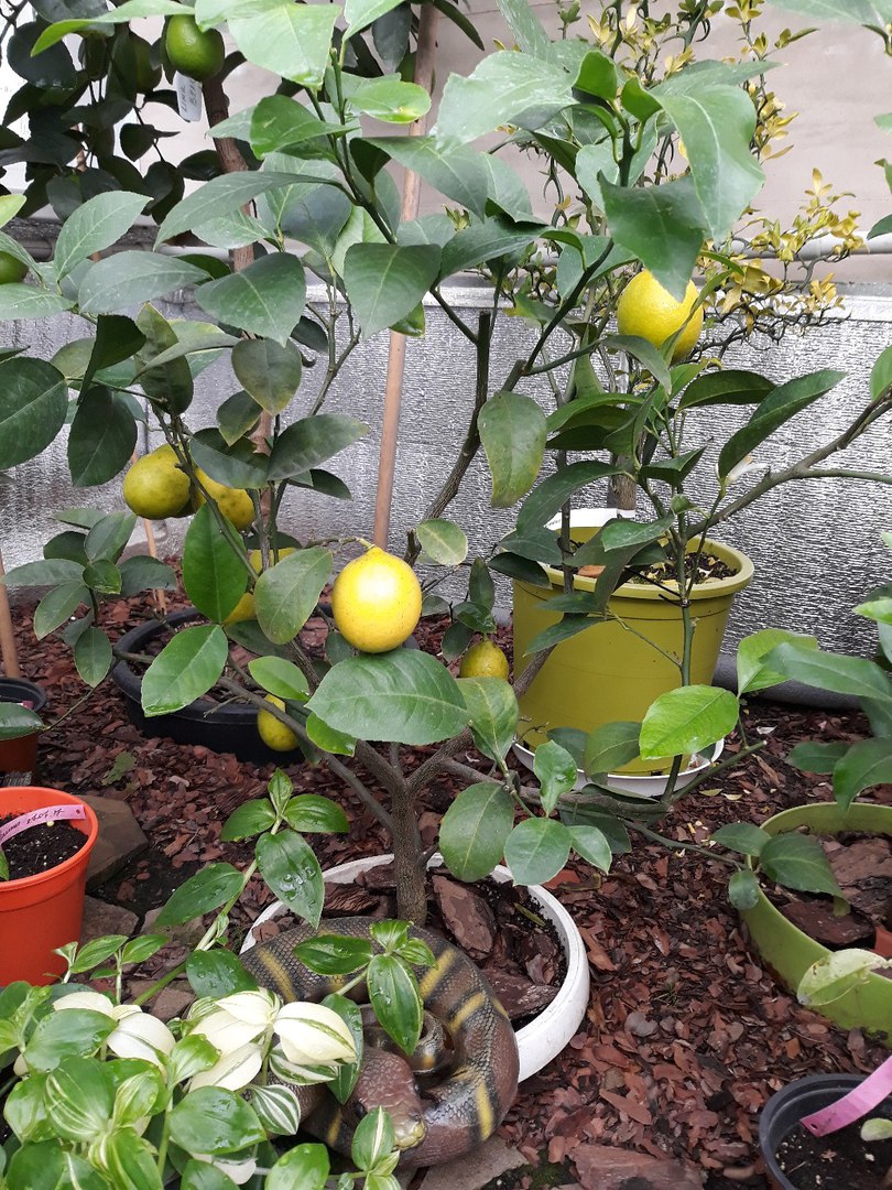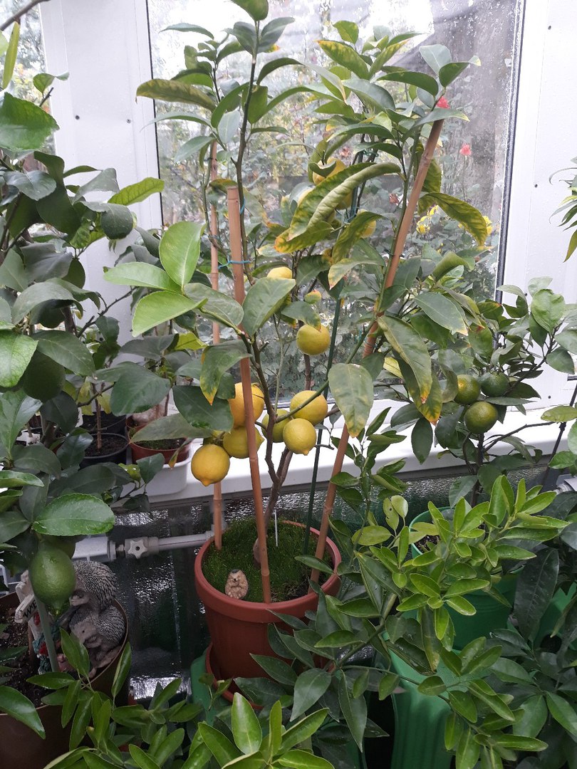 Лимон Сиракузано. ( он чуть натерпелся в этом году, вид не совсем презентабельный, но плодов вынашивает много)