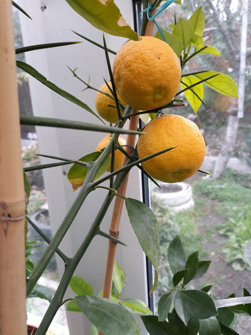 И сорван первый плод на японском лимоне Юзу.