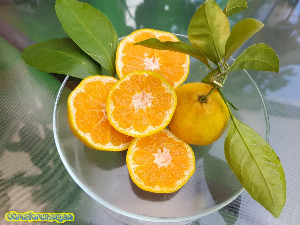 Лопнул плод, пришлось снять, аромат апельсинки очень насыщенный, не дозрелый потому чуть кисловат, при полном дозревании думаю будет слаще, сочный.