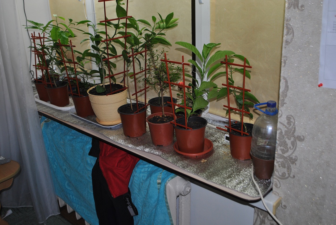 Я тоже сделал из ДСП полку, шире подоконника, специально что бы сильнее перекрыть батарею, а сверху постелил фольгоизолон с наплывом на стекло.Помощь начинающим цитрусоводам