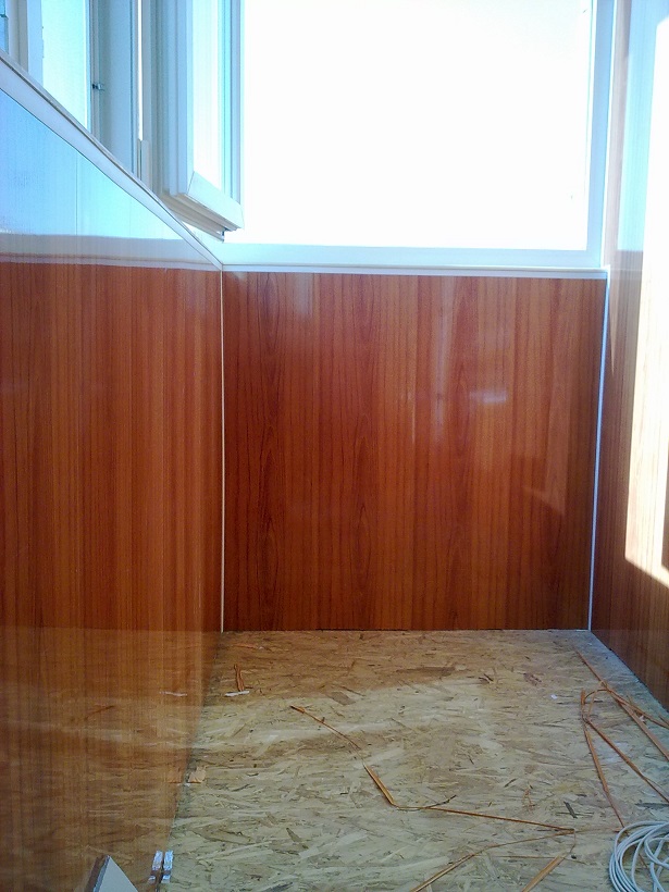 Мне снова пришлось уехать в командировку и все работы на балконе теперь приходится делать брату самому. Сегодня скинул мне фото отчет. Вагонкой уже обшил, правда ремонт балкона плавно перешёл в ремонт прилегающей комнаты.