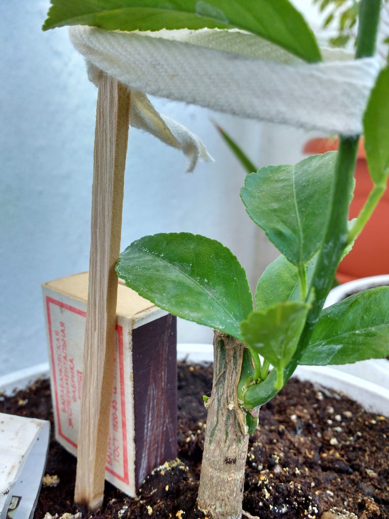 Привит вероятно почкой? Высота прищепа сейчас примерно 18-19 см.