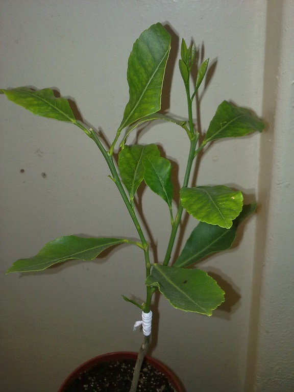 15.10.14 получив новые черенки, решил в качестве эксперимента, попробовать привить вместо черенка, небольшую веточку Лиметты Сантус Доминикус на полученный в тот же день сеянец citrumelo swingle 4475. Прививка удалась, правда срасталась чуть дольше чем обычно, и уже пошла в рост.