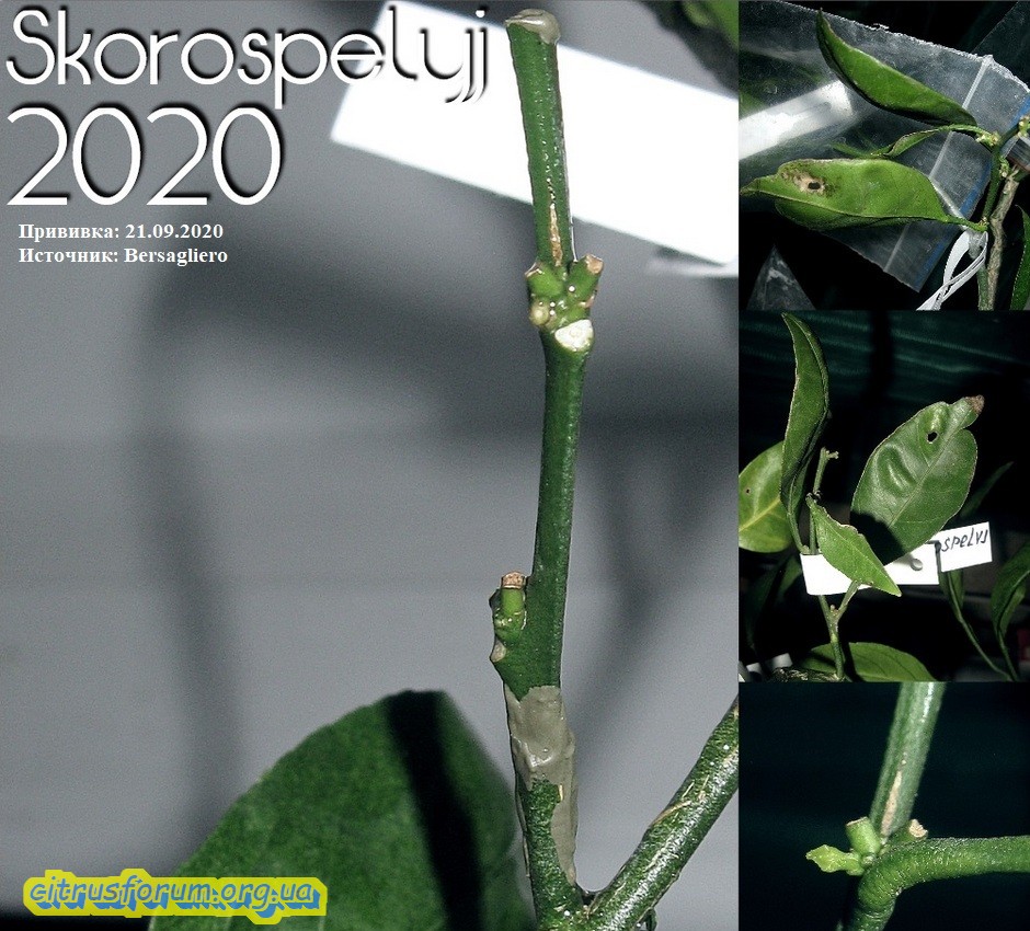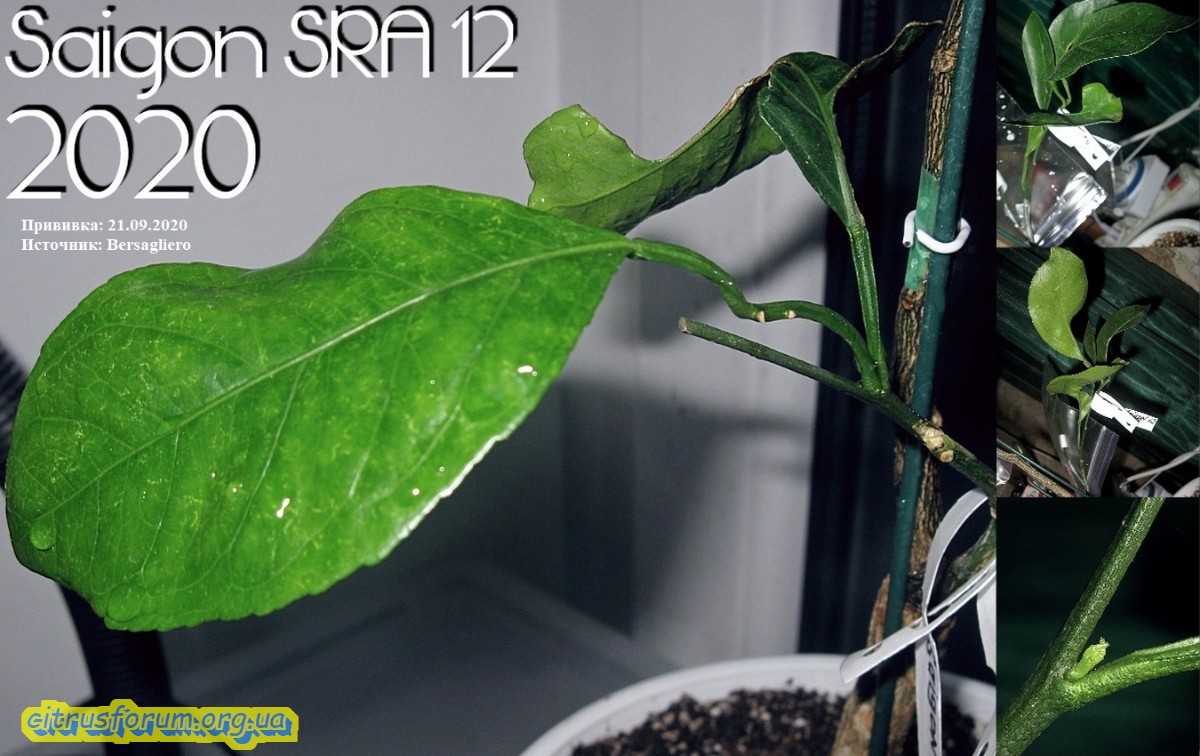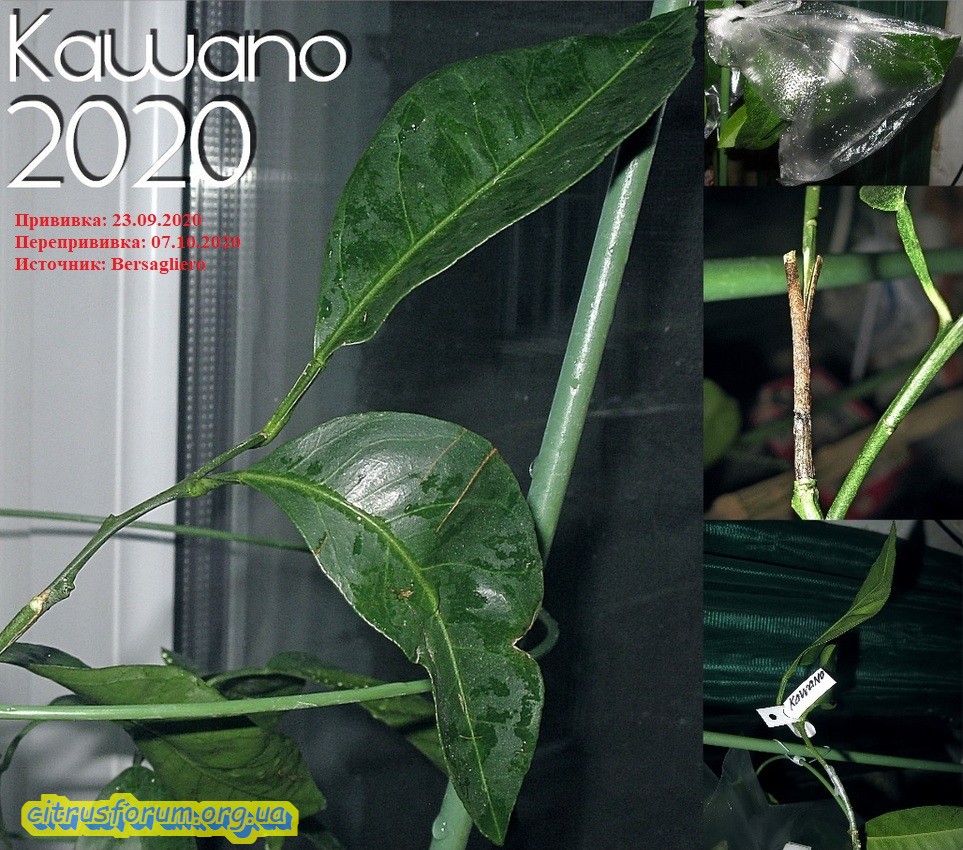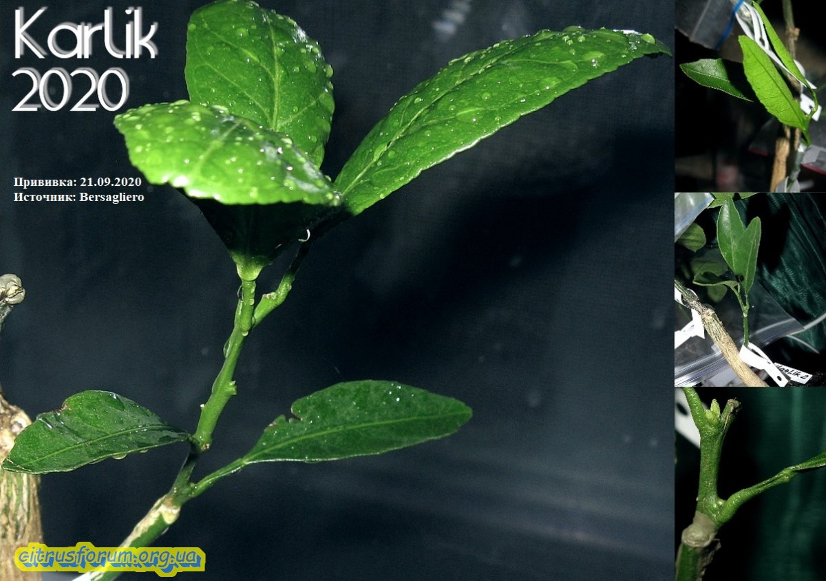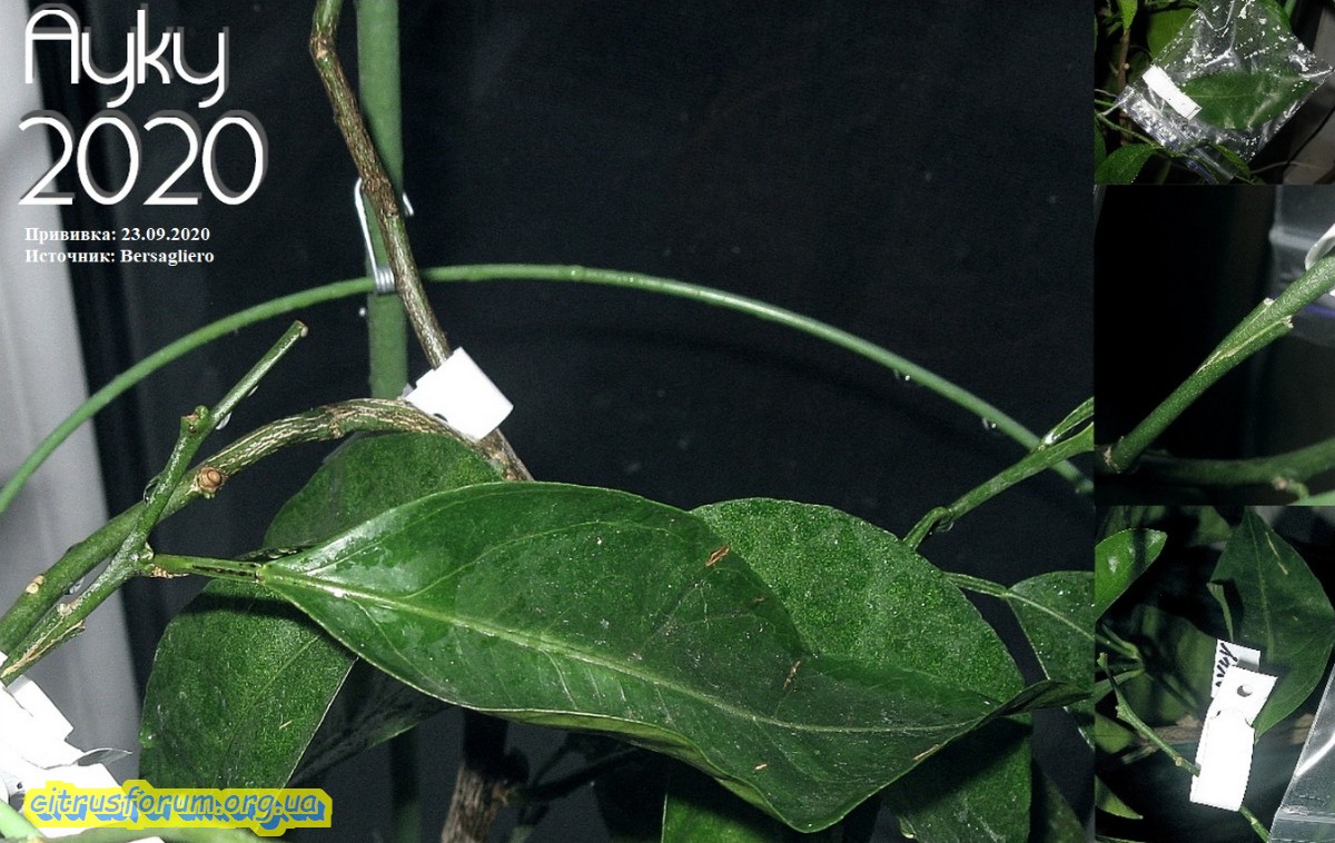Продолжаю освещать, начатую вчера тематику. Сегодня показывая следующий цитрус, принимавший участие в эксперименте, описанном в ранее написанной статье. На сей раз показан цитрус, в конце стадии роста корней, и приближающейся фазе роста кроны, приблизительно за неделю до оной. Было привито одномоментно 4 прививки, две из них в крону, остальные на проросшие ранее побеги подвоя. Прижилась только половина прививок, и что интересно, только те, которые прививались на побеги подвоя. В кроне не прижилось ничего. Таким образом эта стадия развития цитрусов оказалась наименее подходящей для выполнения прививок. На первом фото цитрус, который брался с названием сорта Kpara, на который и прививались прививки. Как сказывал хозяин данного саженца, некий новый гибрид из Батумского бот. сада, между каким то мандарином из группы уншиу и каламондином. Вроде как были претензии на ремонтантность. Пока об этом сказать нечего, ибо даже цветения пока не было. Ну а в итоге имеем цитрус с тремя сортами, прижившимися именно на побеги подвоя. Другими словами культурная часть бывшего саженца и две прививки сентябрьские. На последующих фото показаны прижившиеся две прививки из четырёх прививаемых. На этих фото вся необходимая информация по датам и источнике черенков. Одна из прививок дала прирост, который уже вызрел.