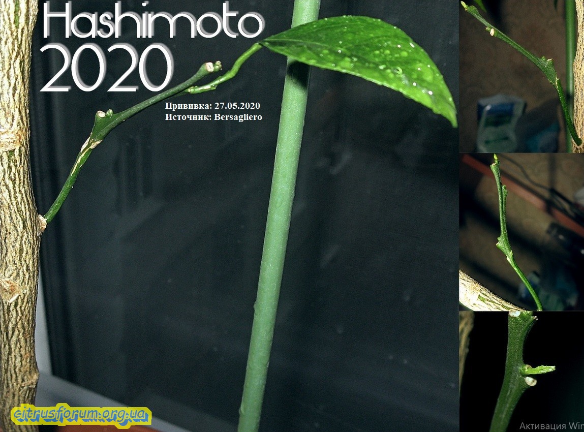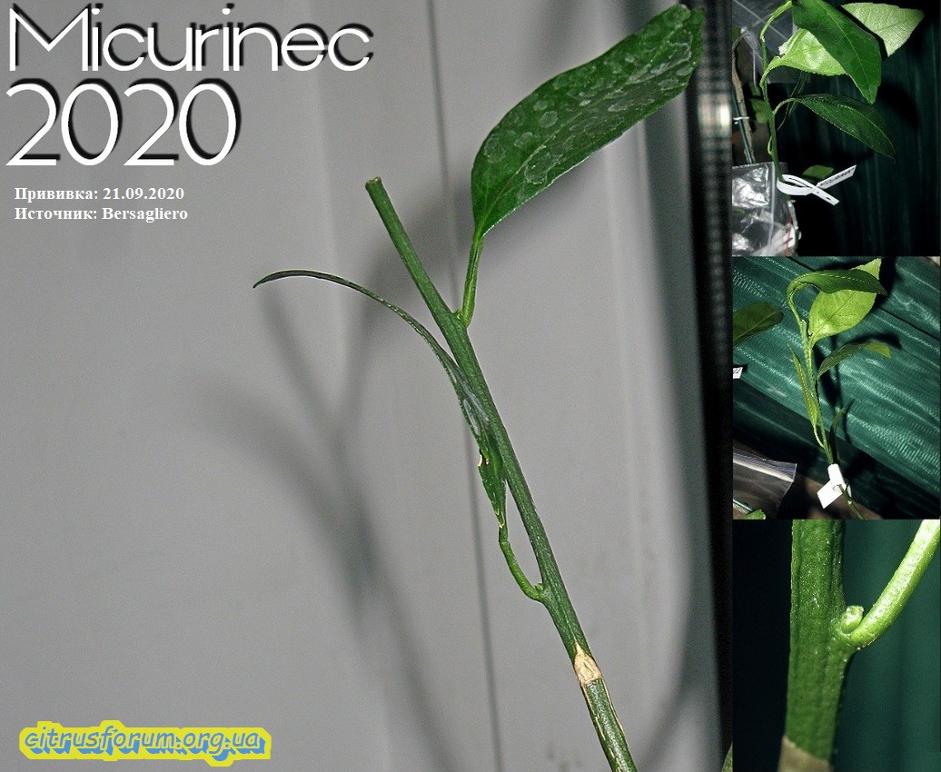 Заканчиваю освещать, начатую ранее тематику. Сегодня показываю последний цитрус, принимавший участие в эксперименте. И на этот раз показываю цитрус в стадии начала роста побегов кроны. Как оказалось, данная фаза развития самая приемлемая для проведения прививочных манипуляций в моих условиях. Было привито одномоментно 6 прививок (наибольшее количество). Прижились все прививки, пять из них пробудились, четыре дали прирост. На одной из пробудившихся прививок прирост был случайно сбит мной (руки из ж...). Все пробуждённые приросты уже вызревшие. На первом фото показан саженец, под названием сорта Клементин. Не знаю, на сколько это название сорта правдиво, ибо плодоношения ещё не было, но данные о таком цитрусе я нашёл. Остаётся ждать плодоношения, что бы как то сравнить по морфологии. Короче, в крону данного цитруса и были сделаны все 6 прививок. На последующих фото показаны все прививки, прижившиеся на данном цитрусе. На фото есть все данные по датам и источнику.