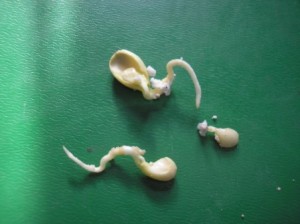 Это Илья свой метод рассказал. У меня смесь перлита и вермикулита в равных пропорциях и все (семена и смесь в Зип-пакет) и на батарею. Вот только нужно у Ильи уточнить как часто нужно контролировать. Но Илья сказал. что корешки не обламываются и так легче разделять полиэмбриональные семена. Вот я все собиралась уточнить, когда он их отделяет. Я этот свой 2-х корешковый попыталась разъединить, но такое впечатление что их там больше чем 2, пока так оставила.Только сняла оболочку.