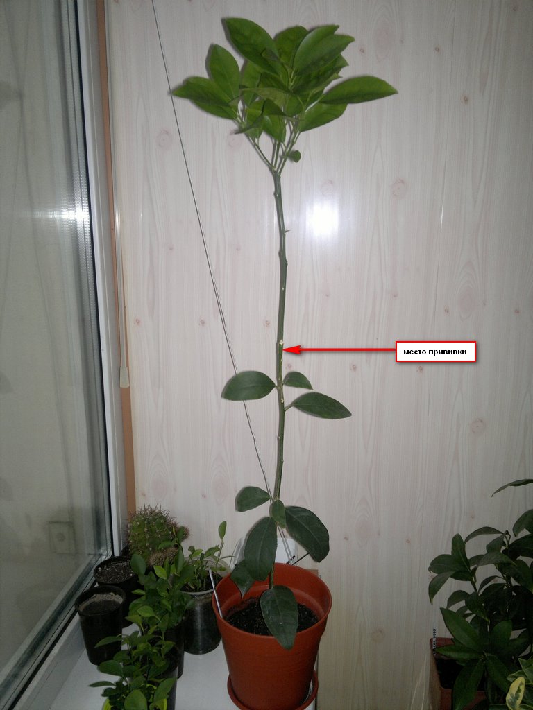 dandr писал(а):Смотрю тут раньше выкладывали фото сделанных прививок с черенков Александра (Bersagliero). Вот и я выложу свой хваст из тех же черенков (апельсин сангвинелло москато кускуна). Подвой - укорененный ранее черенок лимона Мейера. Высота привитого черенка 22 сантиметра.
