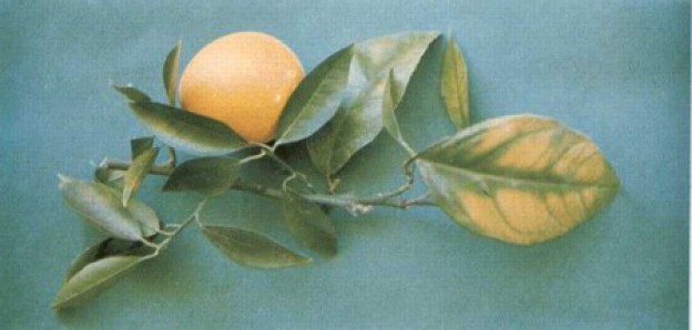 Недостаток магния проявляется пожелтением на листьях, особенно старых, при этом «V» - образный центр листа остается зеленым, с вершиной направленной к вершине листа. Плоды при недостатке магния, имеют более тонкую кожуру, низкое содержание сахаров и более высокую кислотность
