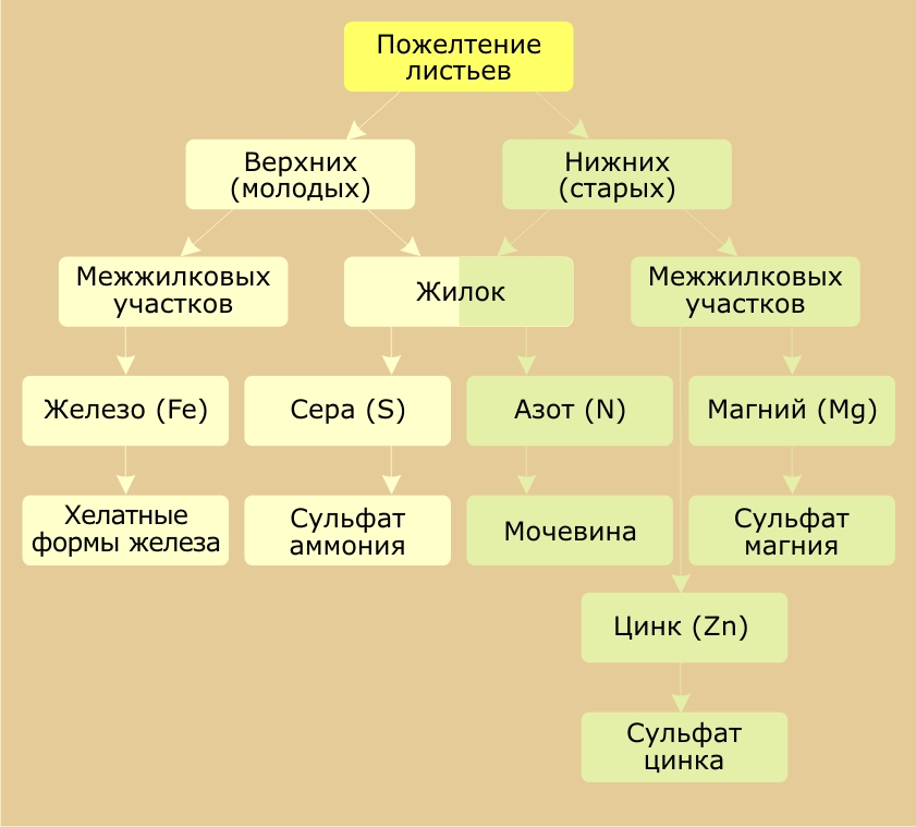 Признаки нехватки элементов питания / Оприділення хвороб та мікро-макро елементів по листях