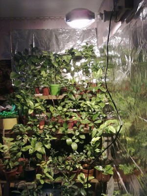 Если же цитрусовые выращиваются при полностью искусственном свете, нам требуется гораздо больше мощности. То есть либо придется использовать много люминесцентных, либо (что гораздо удобнее) использовать лампы высокого давления, дающие очень много света. Для досветки большого количества растений на лоджии или в зимнем саду тоже гораздо удобнее с использованием ламп высокого давления.