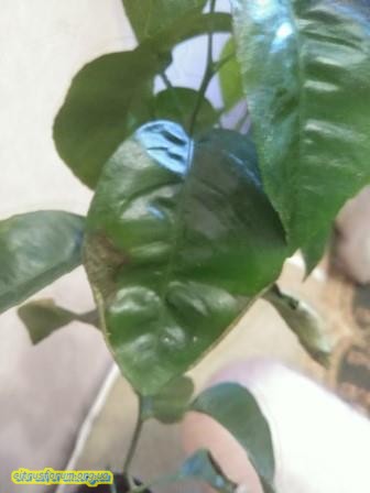 Мандарину около 2 лет, вырощен из косточки, все время стоял на кухне на сверном окне (окна в квартире только насевер). Рос все это время нормально. Единственной проблемой был краевой ожог на болеек старых листьях. Он распространялся с края листа, распространяясь на 2/3 его поверхности, посл чего лист отваливался.