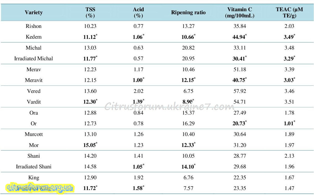 Кислотність, цукор, вітамін, cпіввідношення, taa, (cорта)