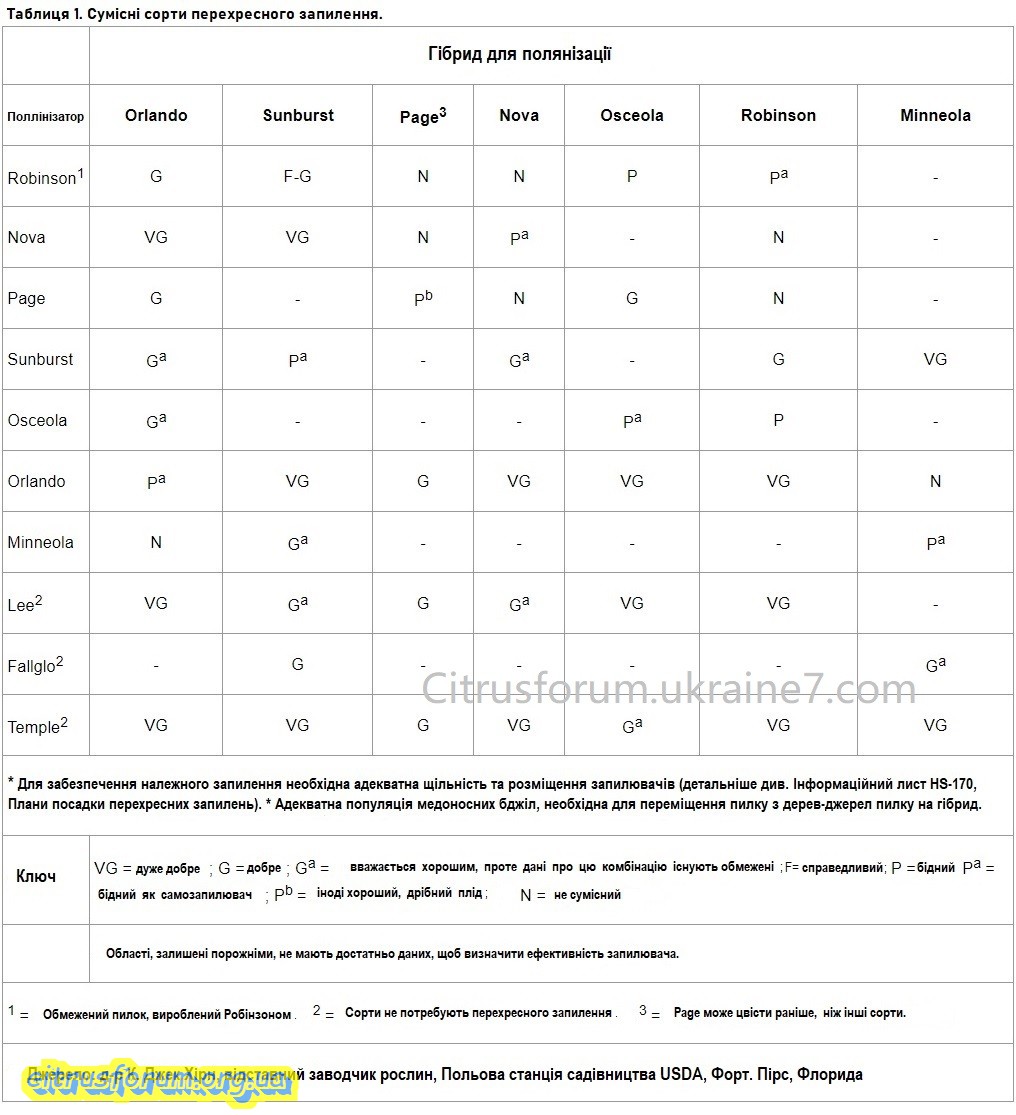 Robinson, Osceola, Nova, Minneola, Orlando, Page, Sunburst, Lee? - Всі ці гібриди (Fallglo і Temple) вимагають перехресне запилення для кращого плодоношення.