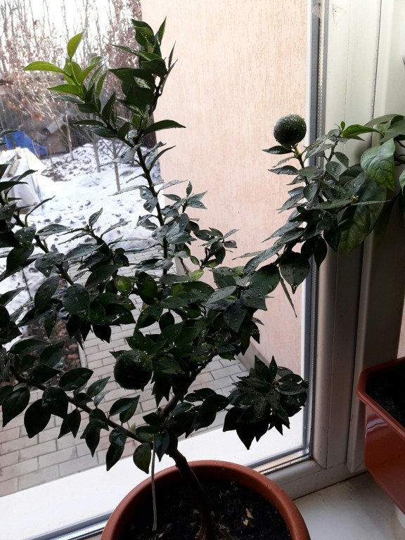 Кантонский лимон на подоконнике после холодной улицы окрашивается вдвое быстрее, уже скоро...