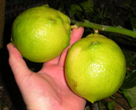 Он действительно совершенно не кислый, даже неспелым. Аромат шкурки приятный, но несколько отличен от лимонного. У тех, кто пробовал, мнения были очень разные, от "так себе" до "очень даже". От лиметты Дольче Романа отличается формой листа и отсутствием законченного желобка вокруг соска. Поэтому сам сосок у большинства плодов скошен в сторону, что особенно заметно у завязей. Говорю "у большинства", потому что плоды получаются разные по форме и размеру. Также у Дольче Романа бергамотовый запах листьев и побегов, а у моего - лимонный.