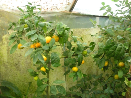 Через некоторое время появился мандарин. Он, больным и чахлым, но довольно крупным, был выменян на ящик других растений. Предыдущая хохяйка сказала, что муж привёз его из командировки с Кавказа. Думаю, что это обычный Уншиу широколистный. Может ошибаюсь? Вылечился и подрос, стал радовать плодами. В 2013 их было штук 30.