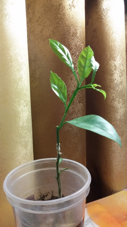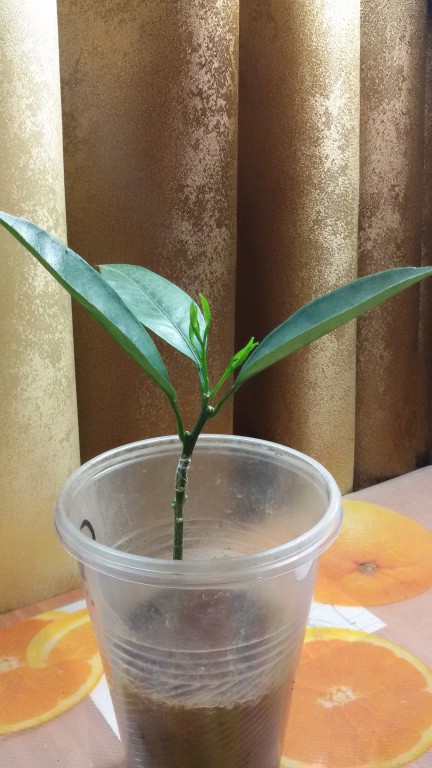Мандарин Миагава 00 , средством долгих манипуляций и рядом неудачных прививок был привит на цитранж, на котором прижился 1 почкой с листочком и спустя месяц безмолвия выдал прирост)
