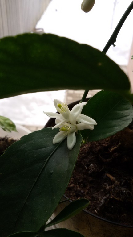 После покупки с. Grandis pummelo o shaddock растение выдало прирост шикарный, и всего1 бутончик, я на него и не надеялся и вовсе позабыл, а сегодня увидел что он вырос и раскрылся и главное все при нем)))