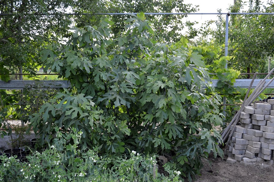 А этот инжир дичек из семян, я над ним провожу эксперименты, уже вторую зиму он зимует без каких либо укрытий в огороде и выживает, но этой весной пересадила его на новое место и он только сейчас пошел в рост.