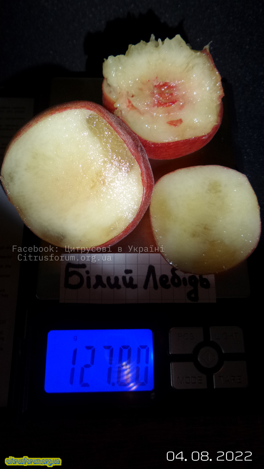 персик 'Білий Лебідь'. Солодкий, без кислинки, м'якоть волокниста і дуже м'ягка, (погана лежкість, та транспортабельність), ванільний післясмак, плодики невеликі (70-80грам). Дещо нагадує персик 'Соковитий'.