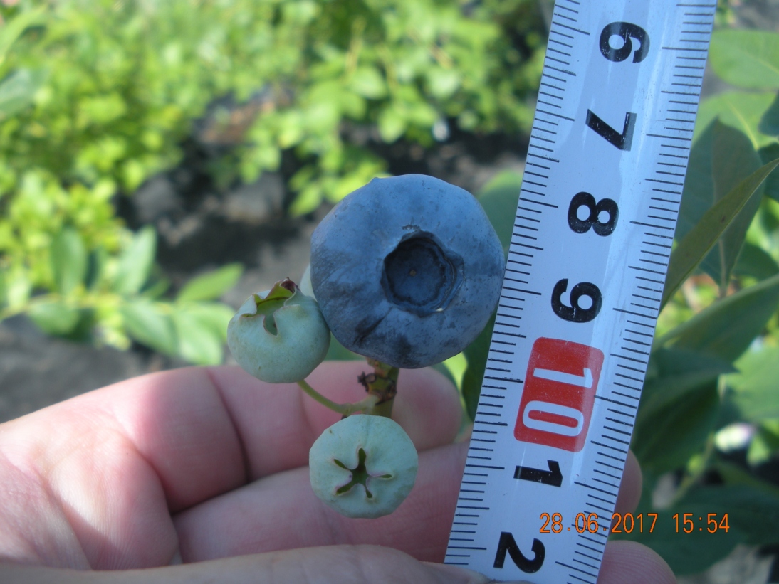 На днях фотографировал голубику, растущую у меня в контейнерах. Это сорт Sierra. Первый урожай, да ещё в горшке, ягод в кистях пока не очень много, размер разный. Но всё же...