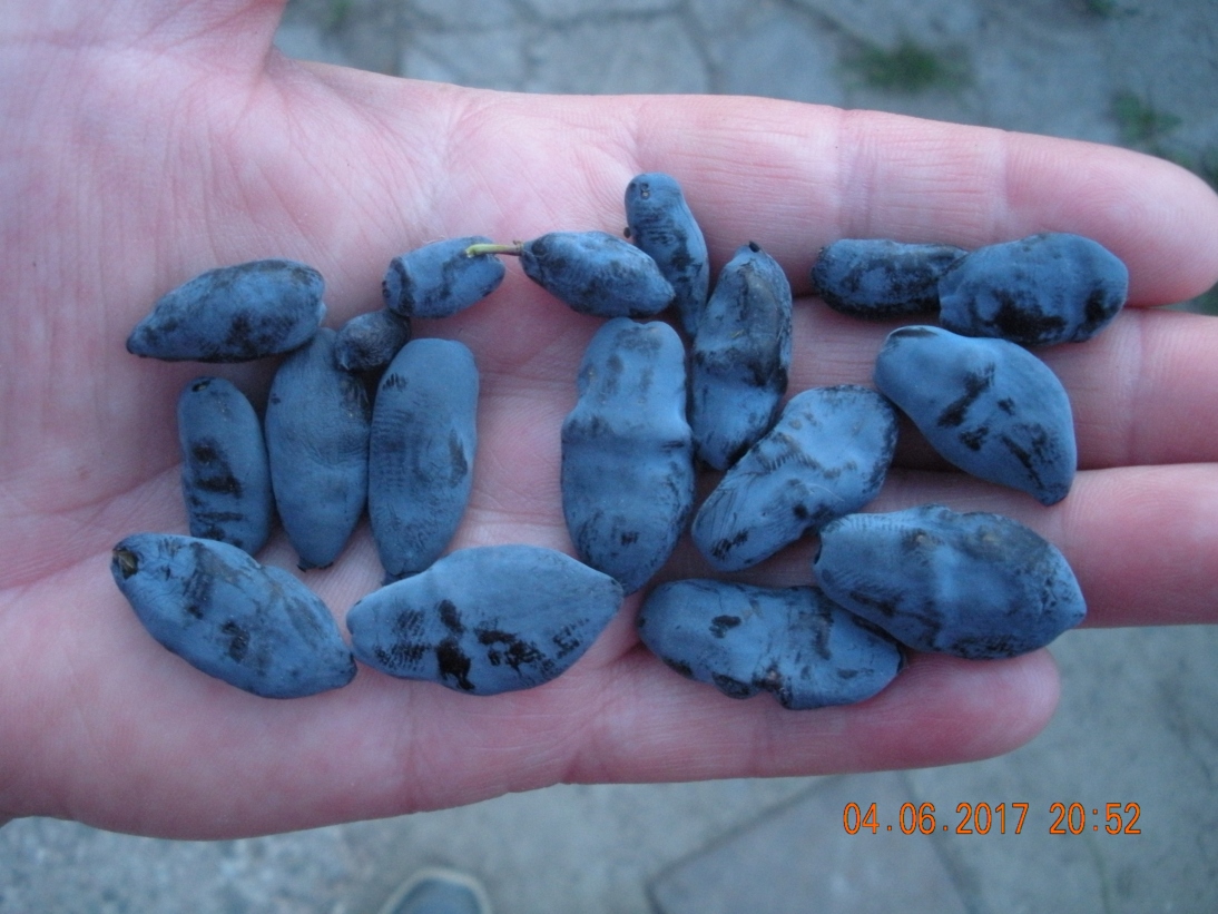 А это - почти весь первый урожай 4-х сортов жимолости съедобной