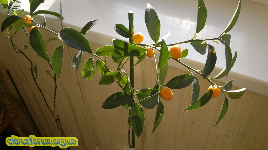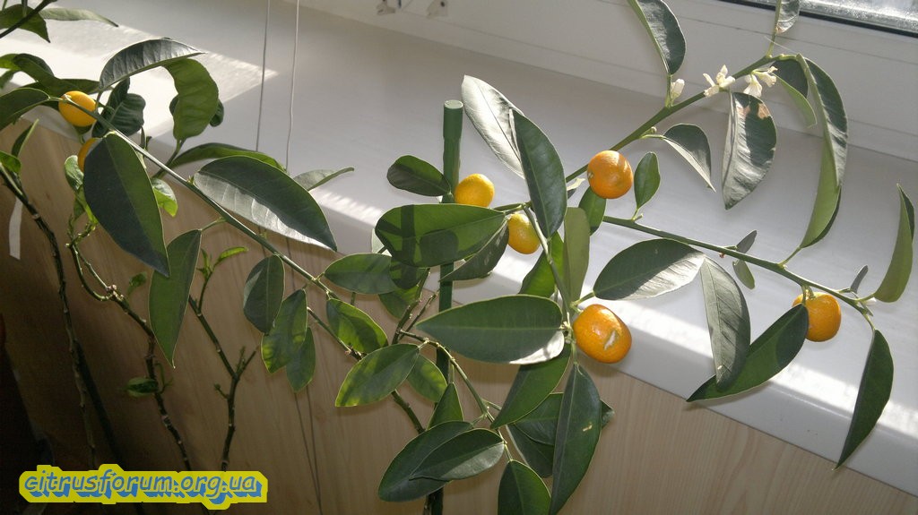Сереж, спасибо. В самом начале моего увлечения цитрусами прикупил на распродаже голландский лимон Kwekerij Jongerling. Судя по всему это Мейер. Этот экземпляр пару лет цвел, но всю завязь сбрасывал. Посему, я его очень активно резал и укоренял. Укореняшки раздавал родственникам, знакомым и "летним поливальщикам" или прививал на них (росли активно и прямым столбиком). В прошлом году мне одну укореняшку отдали - мол у нас она плохо растет. Про себя подумал, вот бы у меня так "плохо" все цитрусы росли. И отвез его прошлой весной на работу. Так что на фото "плохо" растущий укорененный Мейер с "плохо" плодоносящего маточника. Есть у меня на работе еще одна его укореняшка на которой было пять, но чуть меньших плодов (совместное фото).