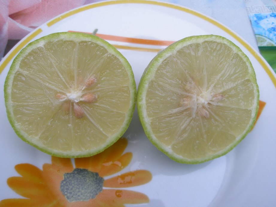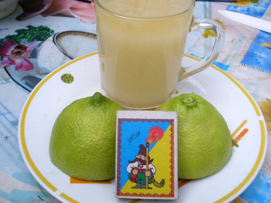 Я весной стригу, а сейчас ещё на нём 10 плодов висят из более 3-х десятков, которые уже съели. Скорее всего по этой причине (нагрузка на дерево - второй год пошёл этому урожаю) в этом году не цвёл. Лимоны на нём очень долго висят - сначала зелёные и понемногу начинали желтеть, а теперь пошли опять зеленеть. Но как видно сочность не уменьшили. С одного лимона столько сока получилось. Может цвет поменялся из-за того, что полностью засыпал сахаром?