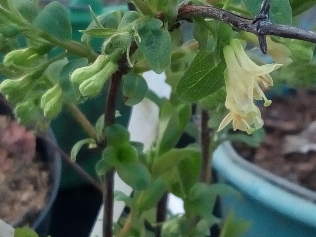 Жимолость съедобная уже цветёт, немного отстала от кизила.