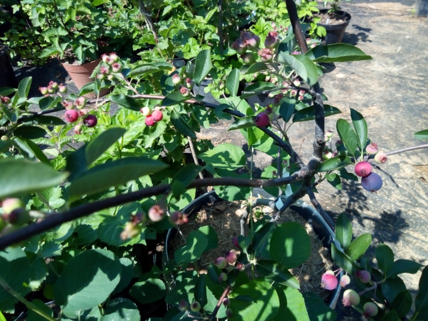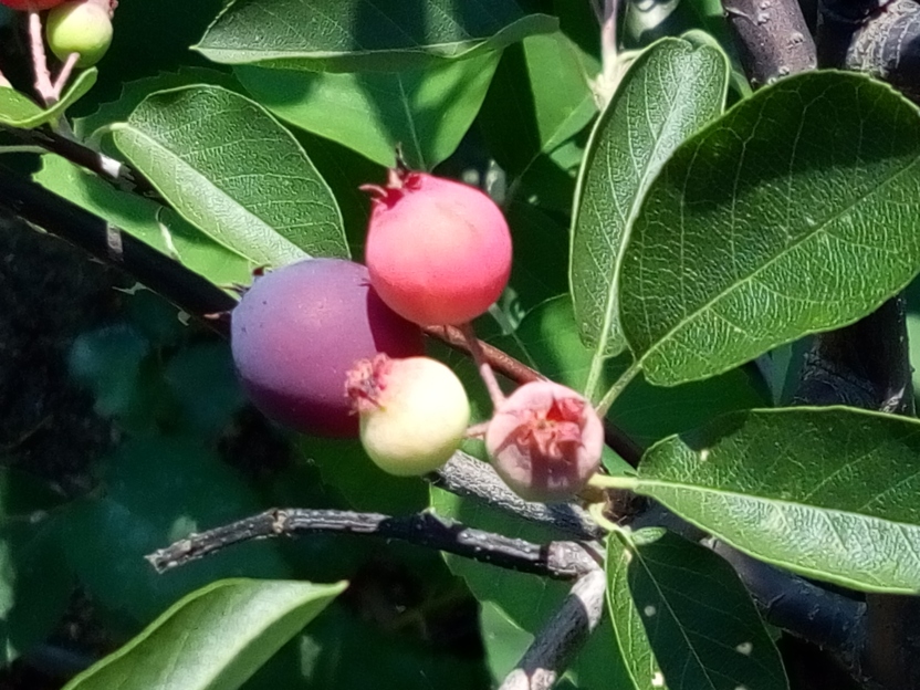 У нас, ирга ещё зелёная, т.е. плоды уже нужного размера, посветлели, но ещё не окрашиваются.