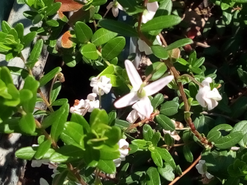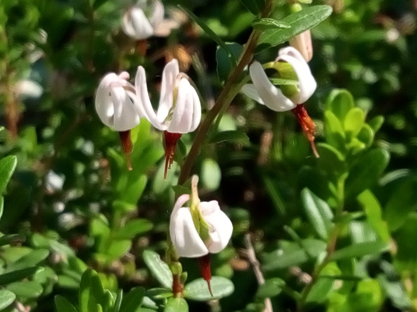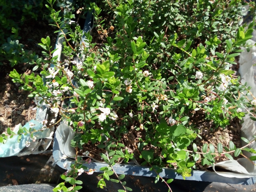 Клюква, посаженная в ящики, цветёт уже довольно долго и что-то завязала.