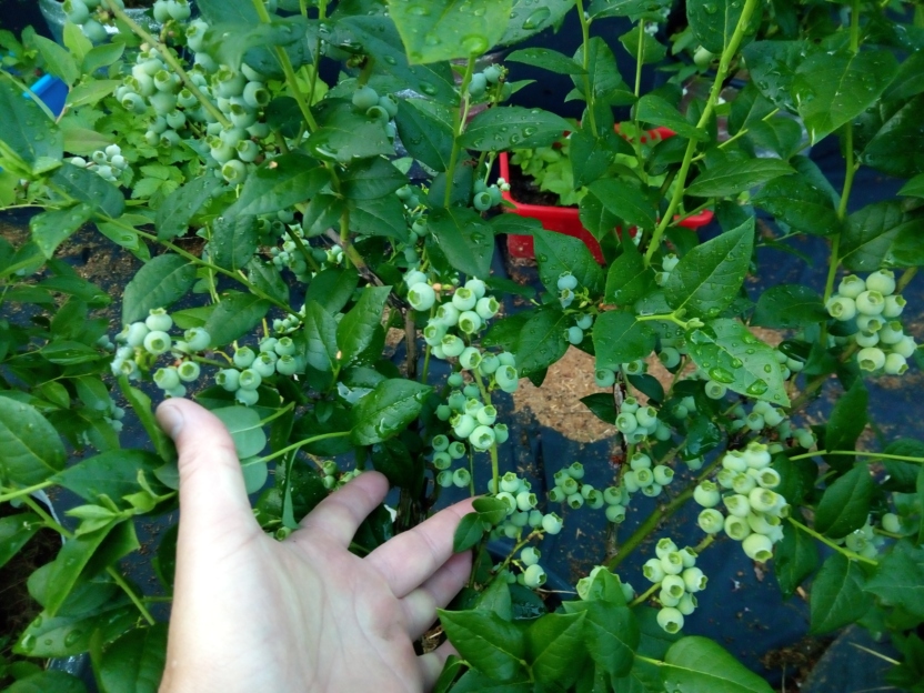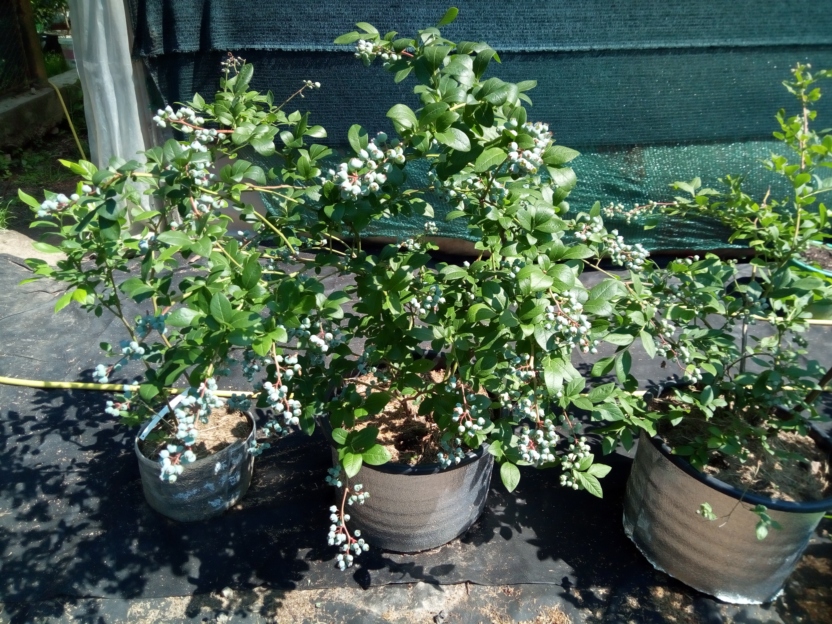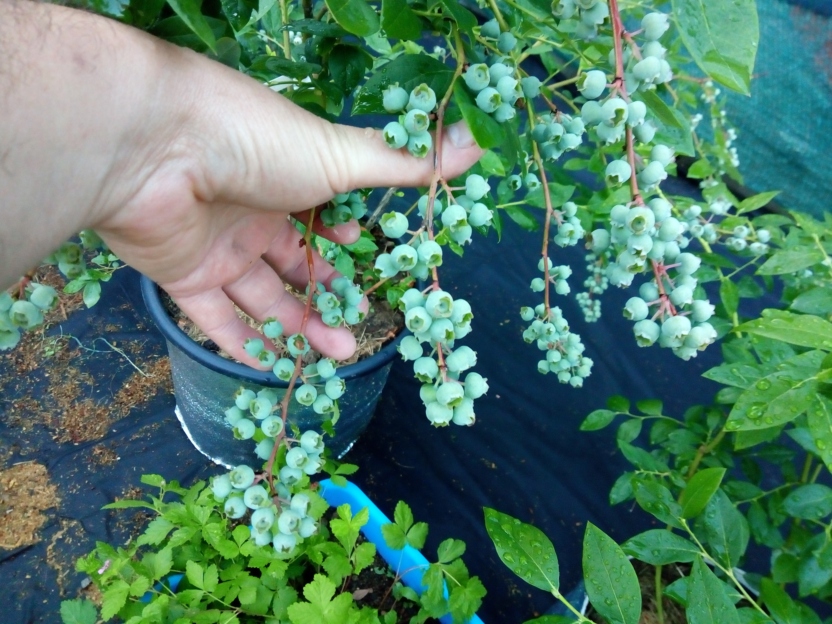 Особенно радует голубика Откровенно говоря, не ожидал от неё такой урожайности в контейнерах на второй год после посадки. Это фото высокорослых сортов.
