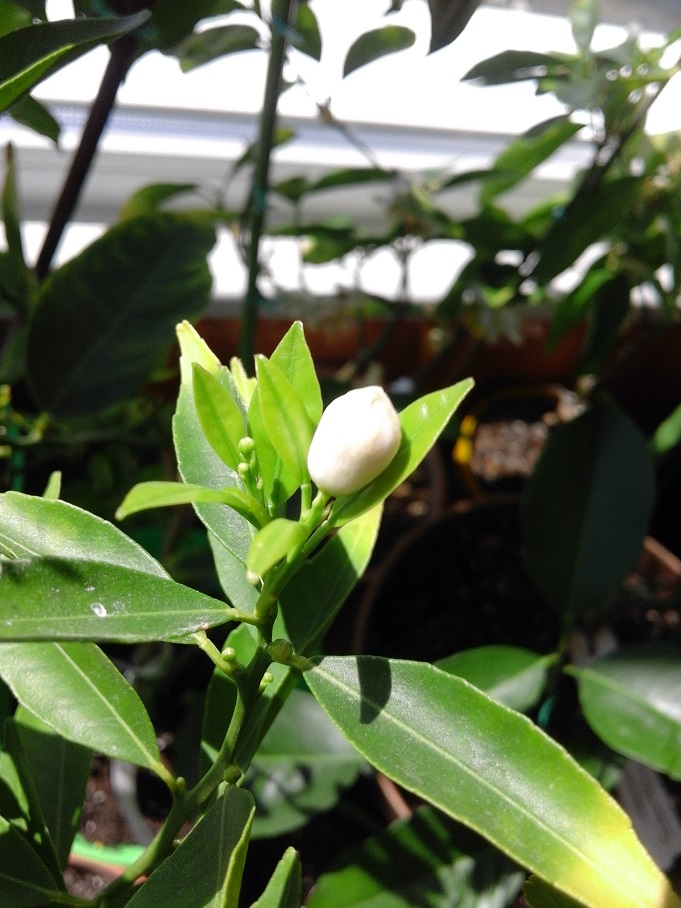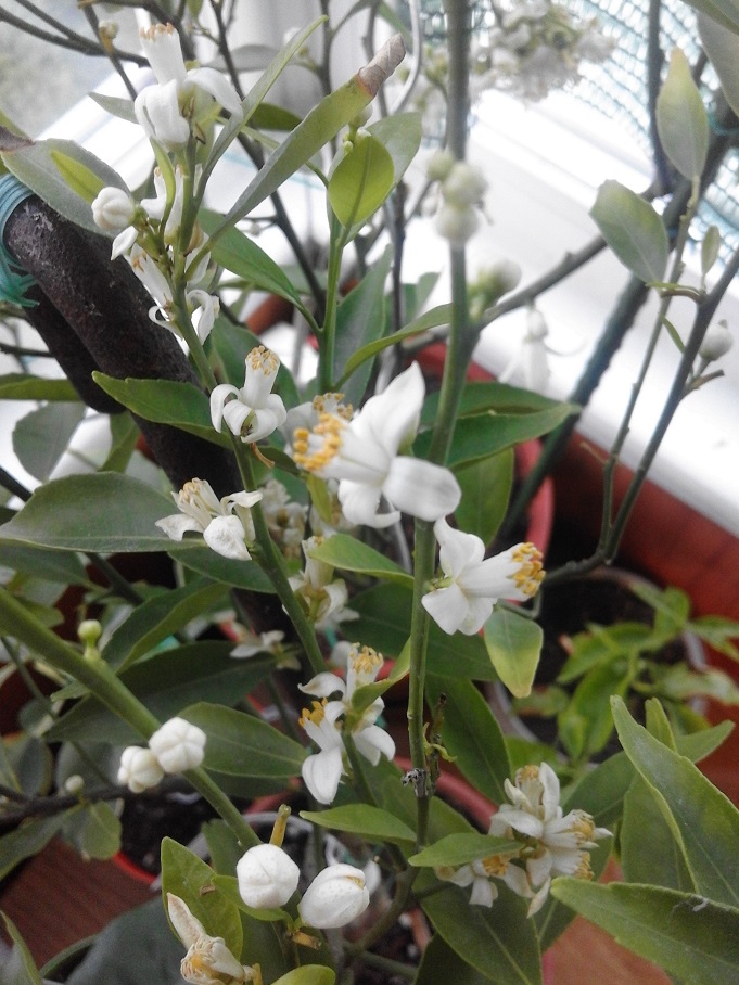 И потихоньку оживает залитый в прошлом году во время моего отсутствия Апельсин (Арансио). Этот экземпляр у меня участвует в эксперименте посажен в коко-грунт+перлит+осмокот. Пока полет нормальный, посмотрю, как будет дальше развиваться, а пока мы цветем.