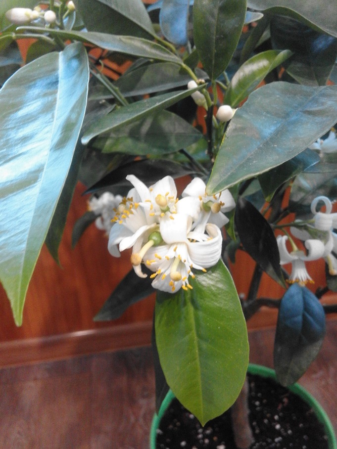 Активно пошел в рост купленный осенью не известный апельсин, но цветение дает надежду на определение сорта .