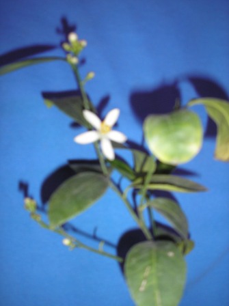 Подарок к Рождеству. Распустился первый цветок на Мейере. Запах возле стелажа с цитрусами не отойти. Предсавляю какой будет аромат в комнате, когда распустится большая часть цветков.