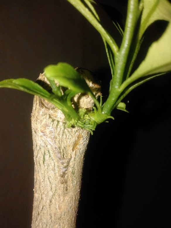 В прошлом году я не успел пересадить некоторые цитрусовые с ОГ обратно в горшки до заморозка и поплатился за эту промашку потерей некоторых сортов и частью наращенных за лето крон. Больше всех пострадала Лиметта Сантус Доминикус вся крона была потеряна осталось всего пару почек в месте прививки и вот с октября я терпеливо ждал и надеялся периодически выламывая ростки на подвое. И вот пару недель назад почки пошли в рост, очень надеюсь восстановить былую крону этому цитрусу.