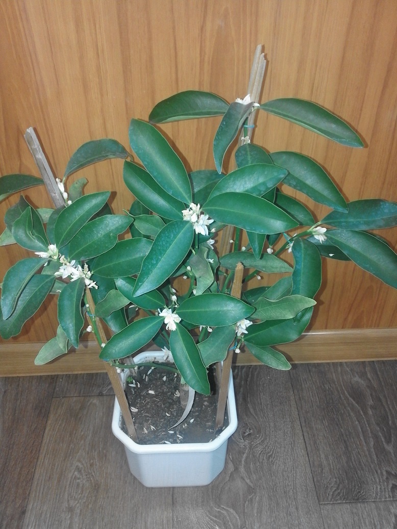 И у меня начался период цветения кумкватов. Особенно радует первое цветение кумквата Маргарита Биг, черенок был получен от Алины полтора года назад
