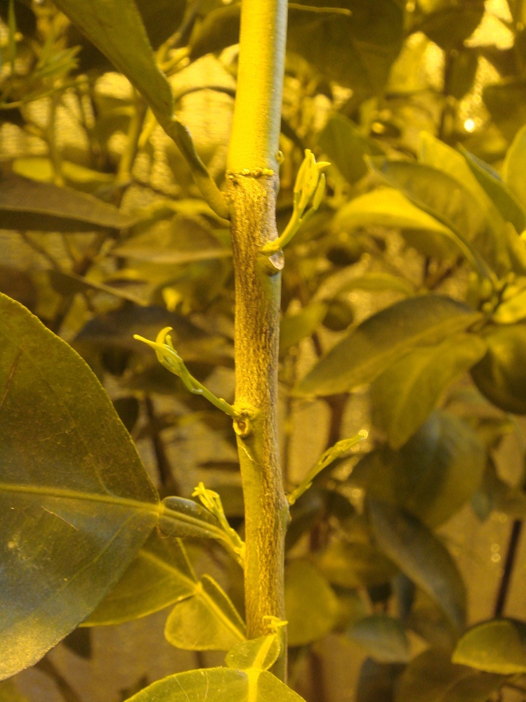 Еще я заметил одну вещь, как только заносиш их во внутрь, даешь свет, температуру и повышенную влагу - все дружно расцветают, кто в ущерб вынашивания завязи, кто в ущерб росту. Я их обрабатывал эпином для аклиматизации. Может это эго действие? Если так, то какой адаптоген можно использовать вместо него? Вашингтон (фото 1) сбросил единственную завязь размером с грецкий орех, и цветет. Фото 2 - мандарин Денси, американец, первое цветение, с ним все нормально но как не вовремя.