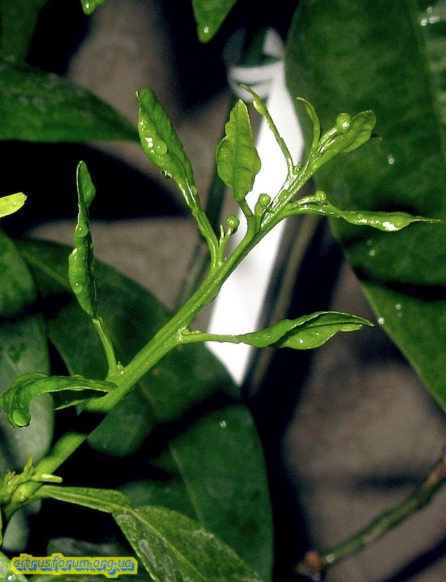 Всем привет. Похоже появляется повод рассказать полную информацию по клементину Hernandina VCR от Александра (Bersagliero). Это уже второй прирост, он видимо скрывает в середине "ручки" бутон. Т.е. на приросте, который выходит не из черенка, а из прошлого прироста.